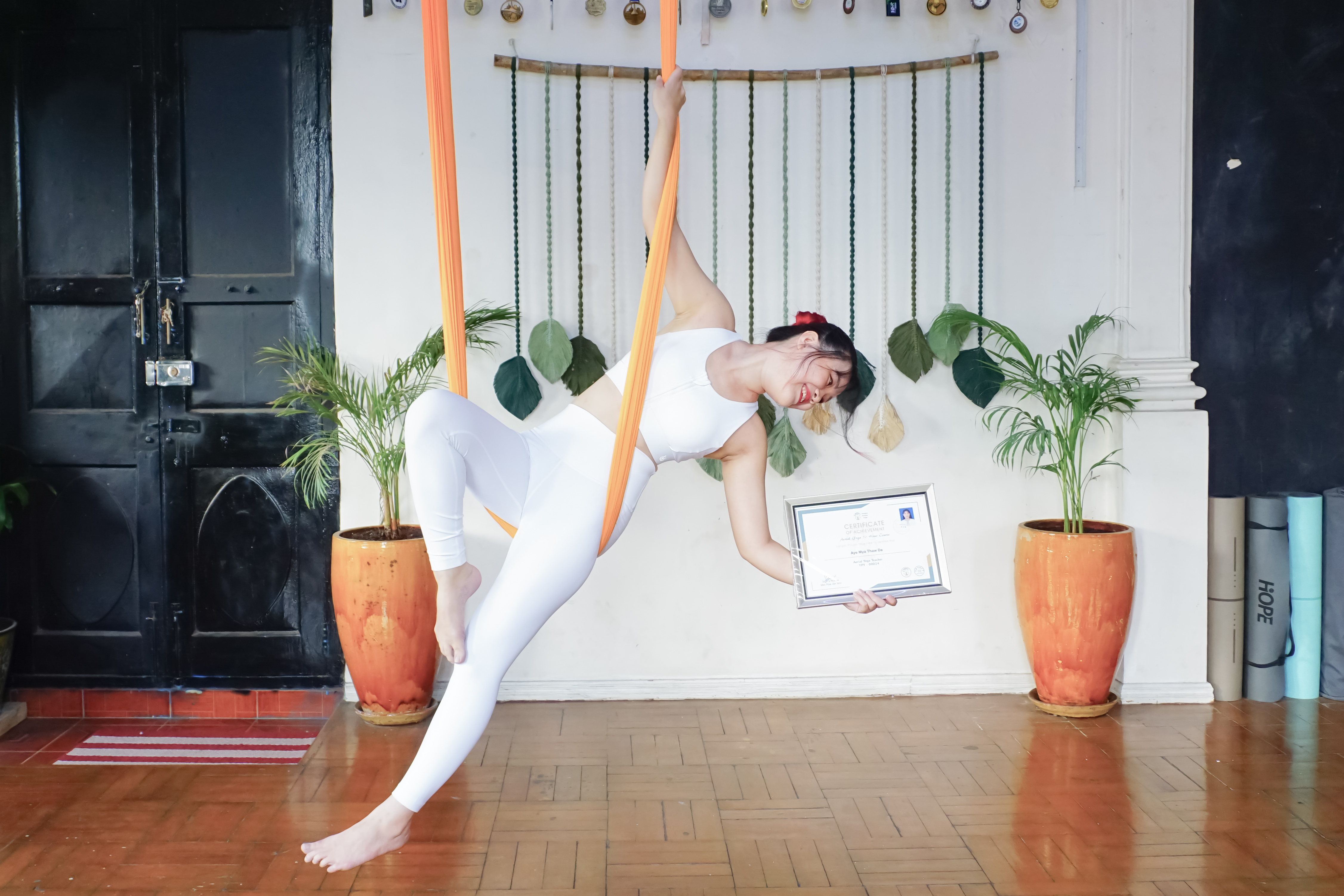 Let’s rise together with aerial yoga toward a healthier, more beautiful life.