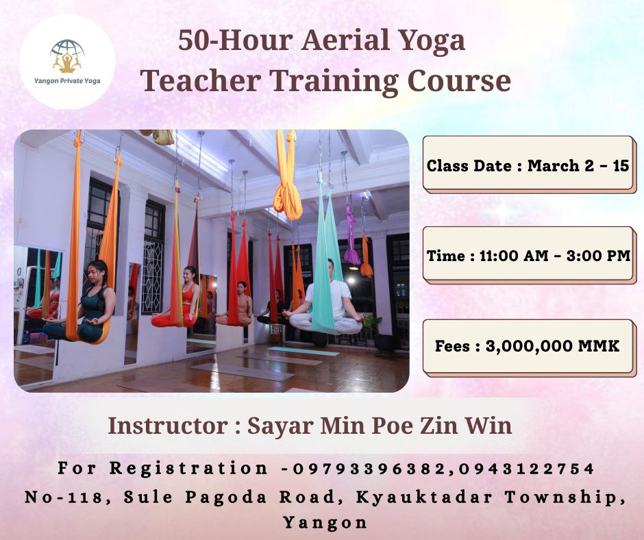 ❓ Why Choose Yangon Private Yoga? Expert Instruction: Learn directly from Sayar Min Poe Zin Win, an experienced practitioner who has successfully mentored numerous instructors. Career Ready: We equip you with the confidence and practical skills needed to lead your own classes immediately upon graduation. Business Insights: Gain essential knowledge on studio management, safety protocols, and professional guidance for opening your own studio. Hands-on Experience: Comprehensive 50-hour practical training sessions. Accommodation Support: We provide housing arrangements for students traveling from provincial areas for the duration of the course. Transform your future by doing what you love. Become a Certified Instructor today!